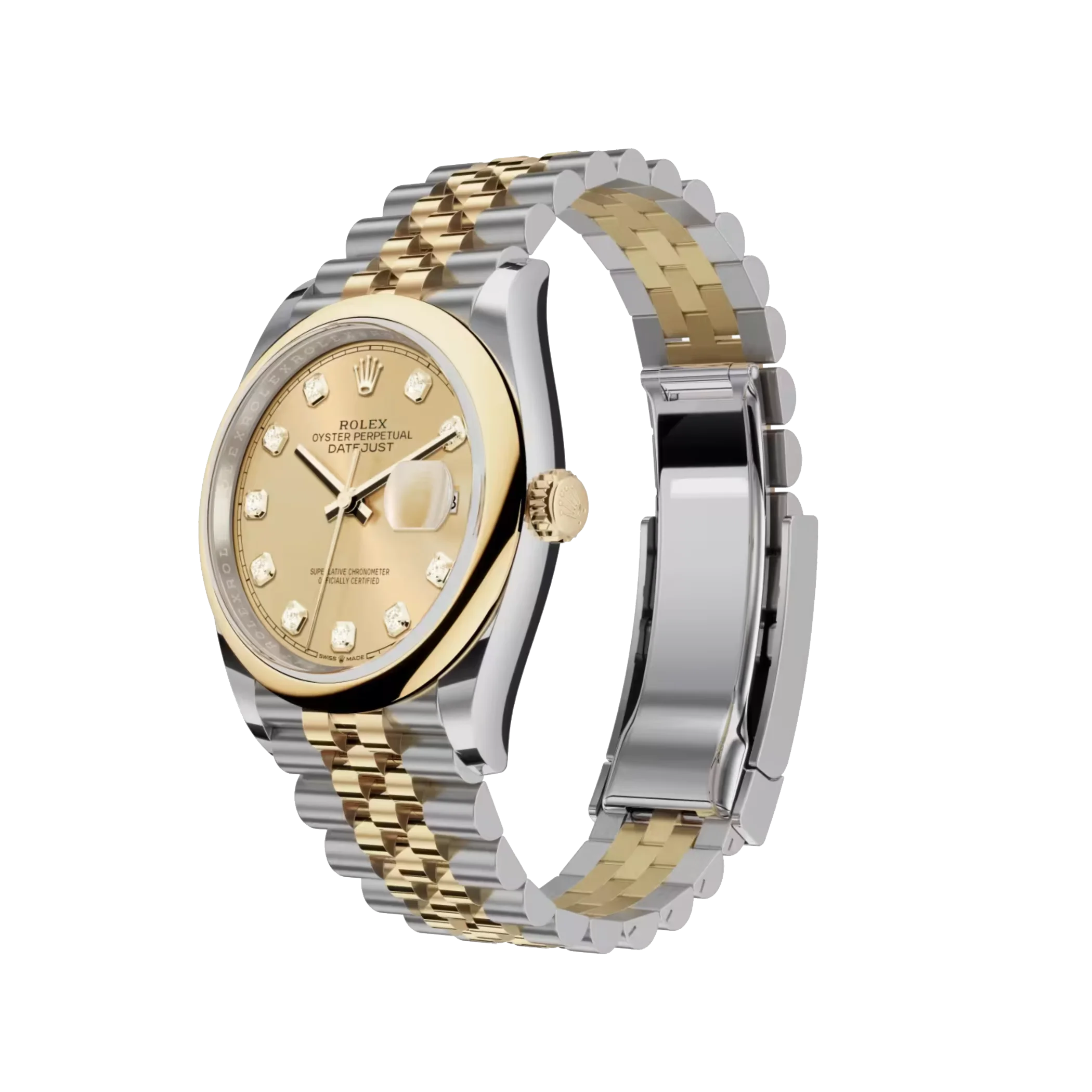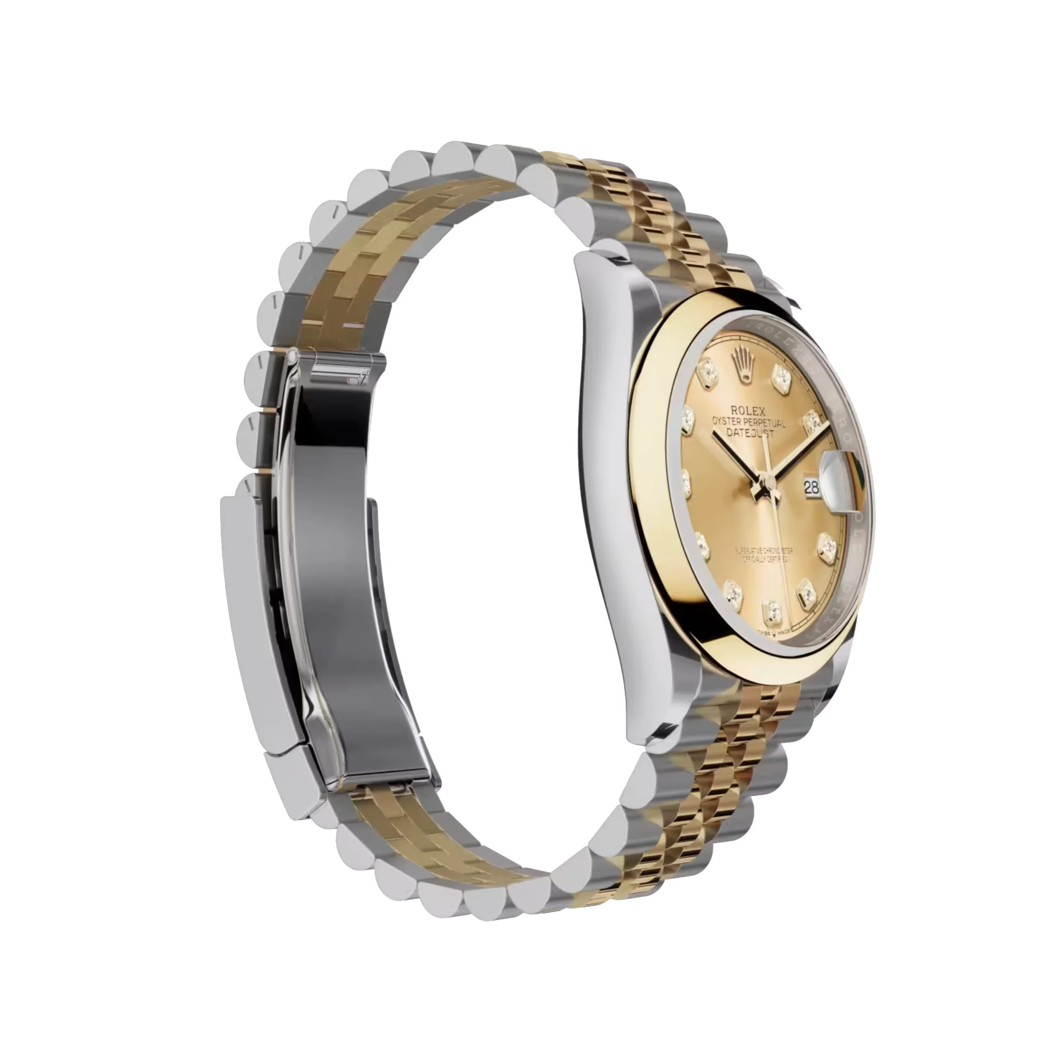 Advanced high technology is used in the creation, development, and manufacturing of Rolex bracelets and clasps, as well as in the rigorous testing that goes into them. Additionally, aesthetic controls by the human eye ensure flawless beauty, just like with all the watch’s components. The Oyster Perpetual Datejust was introduced in 1945, and the Jubilee, a flexible and cozy five-piece link metal bracelet, was created specifically for the occasion.
