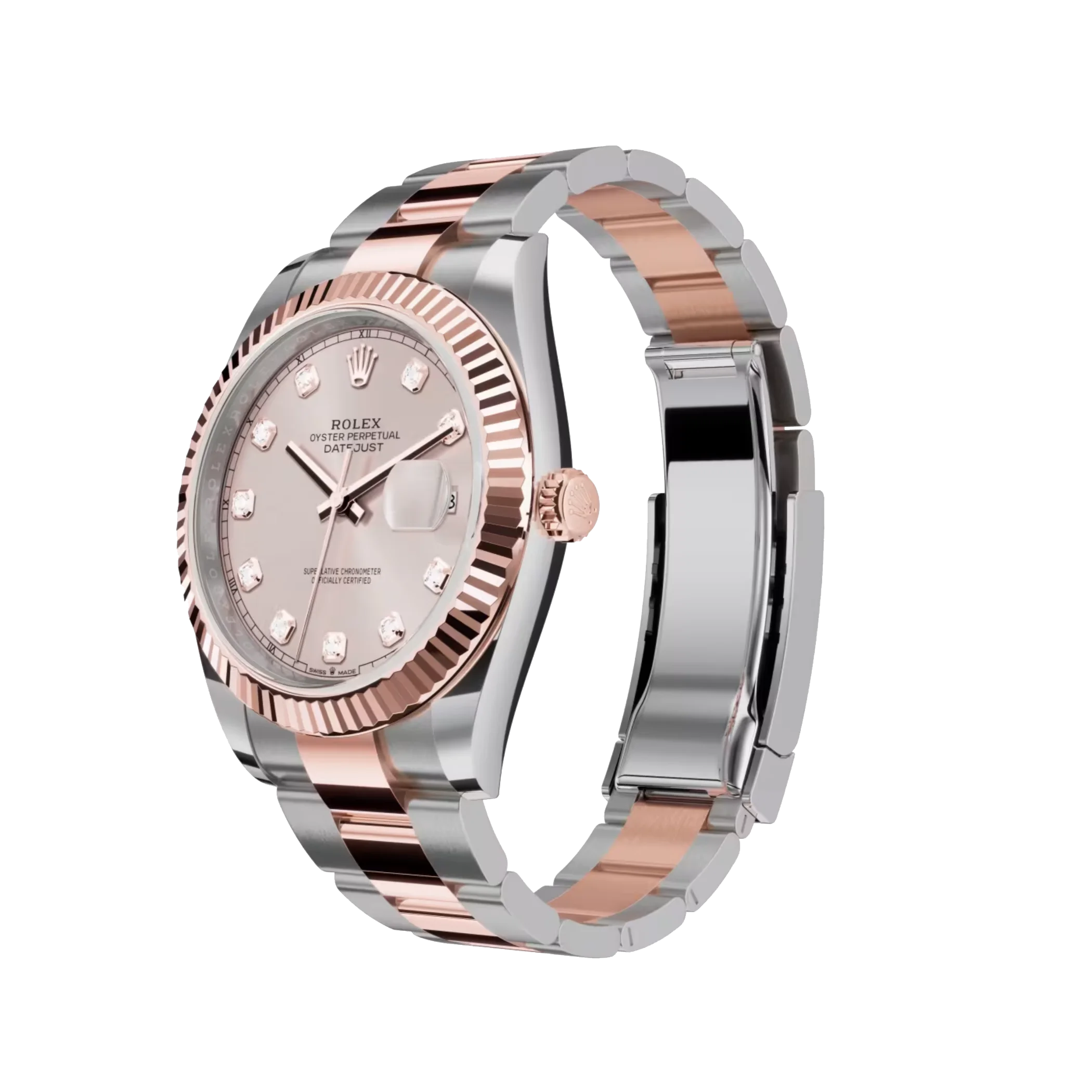 Rolex Datejust: 41 mm, Oystersteel and Everose gold, sundust diamond-set dial, Oyster bracelet, m126331-0007